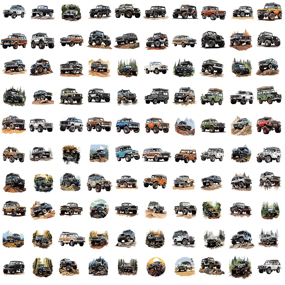 100pcs not repeated hand-painted jeep off-road vehicle truck waterproof sticker