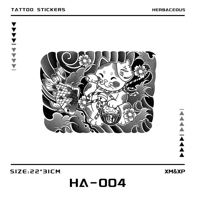 2pcs Maneki-neko with Koi Fish Temporary Body Tattoo Stickers