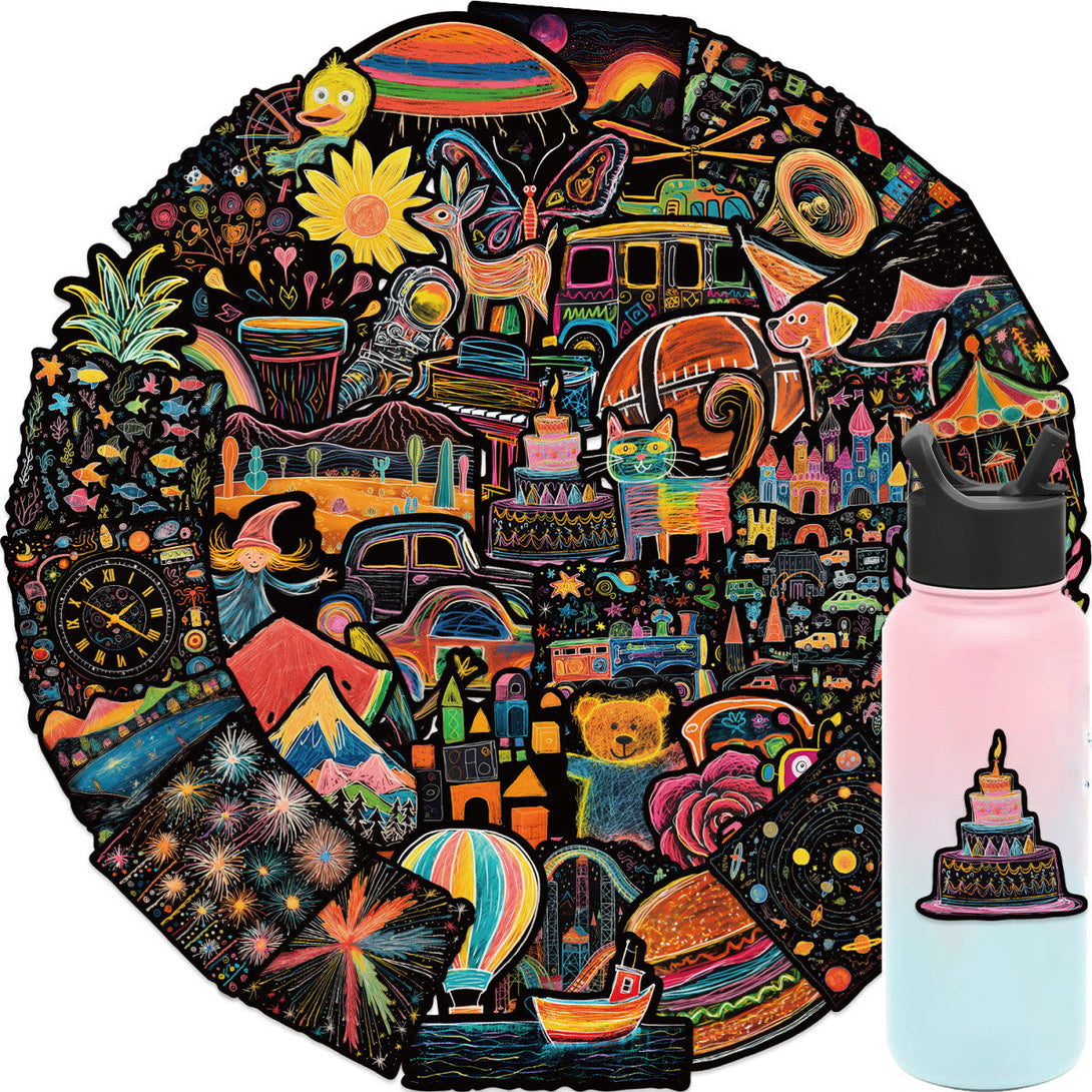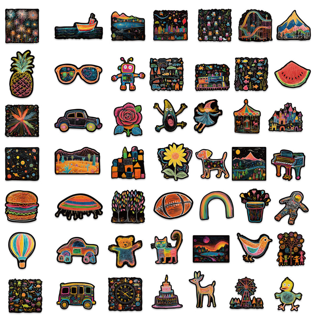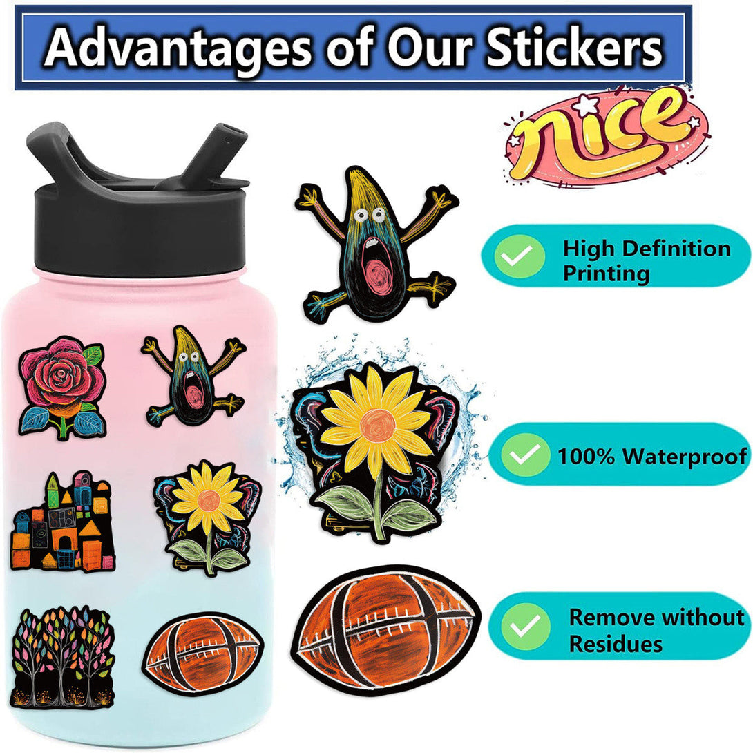 50pcs not repeated colorful doodle painting waterproof sticker