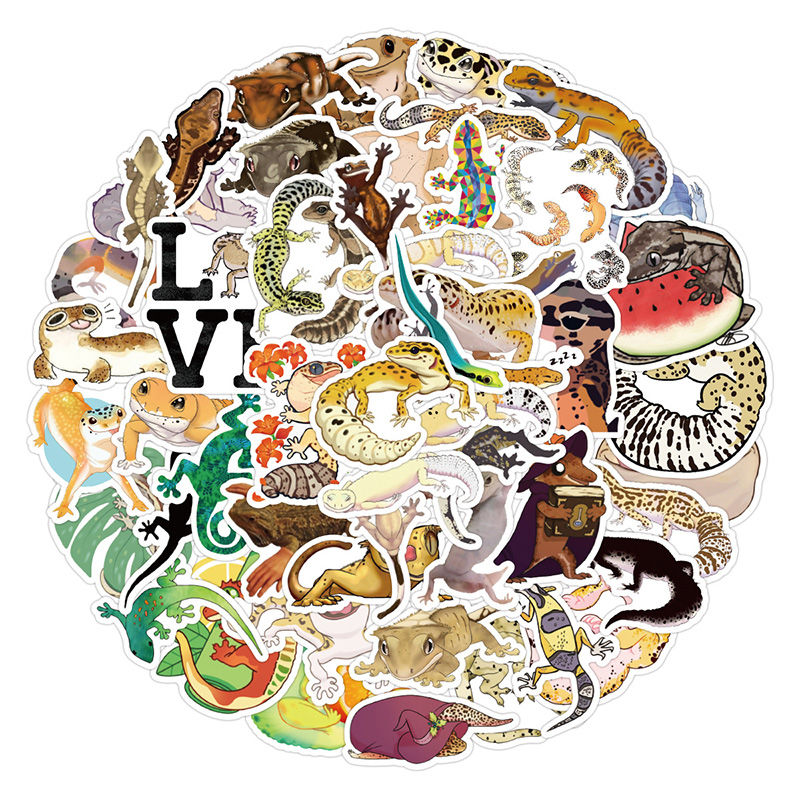 50pcs not repeated cute gecko waterproof sticker