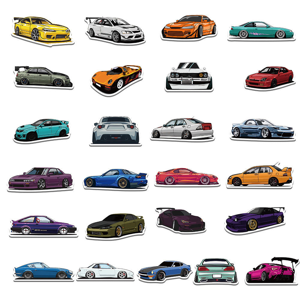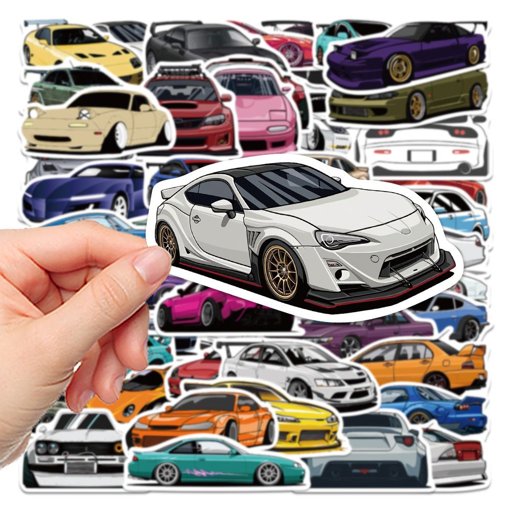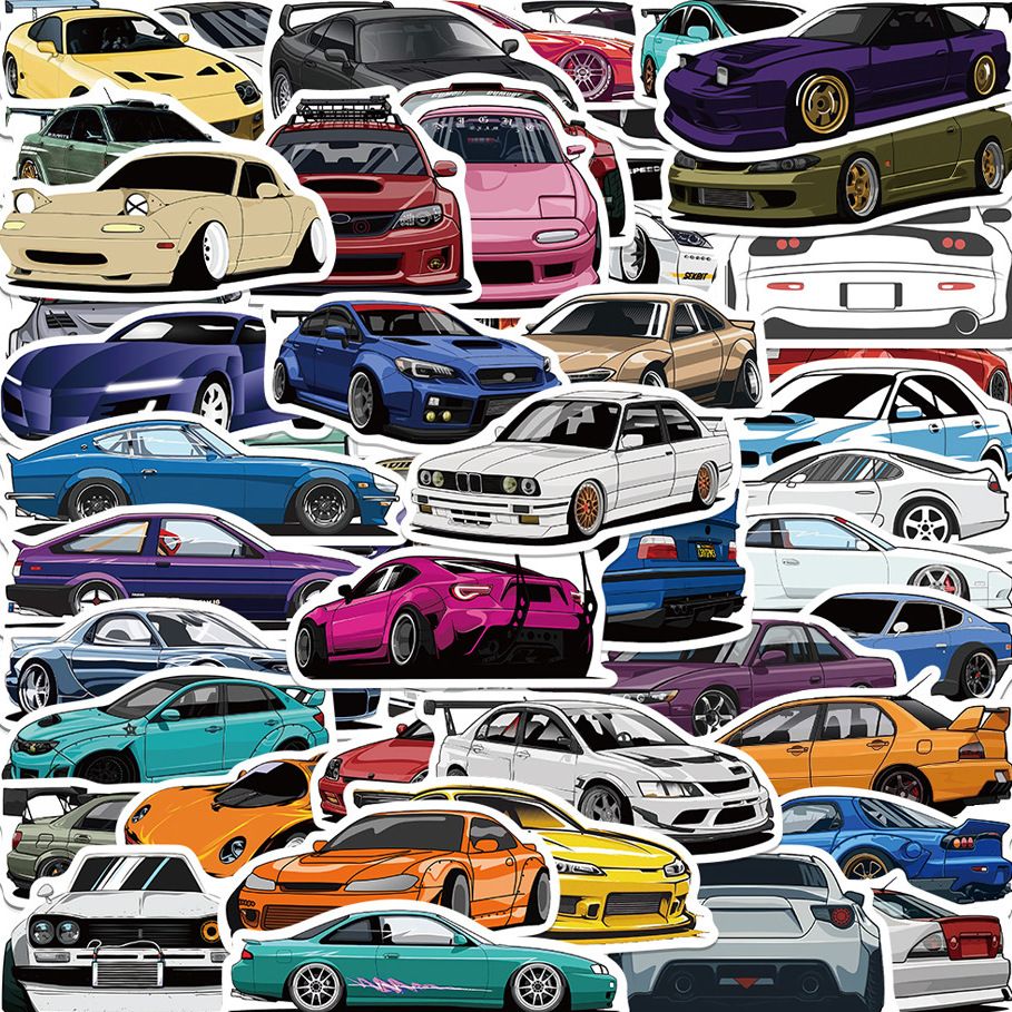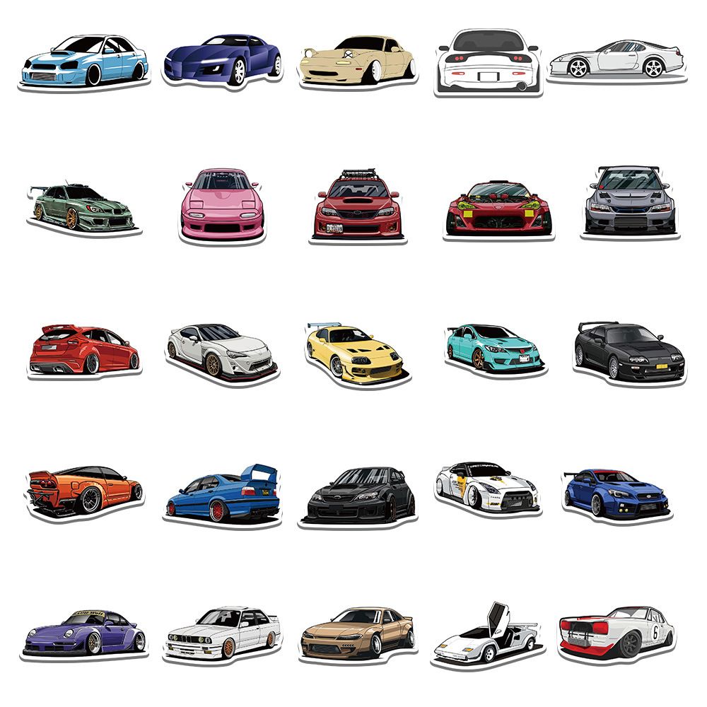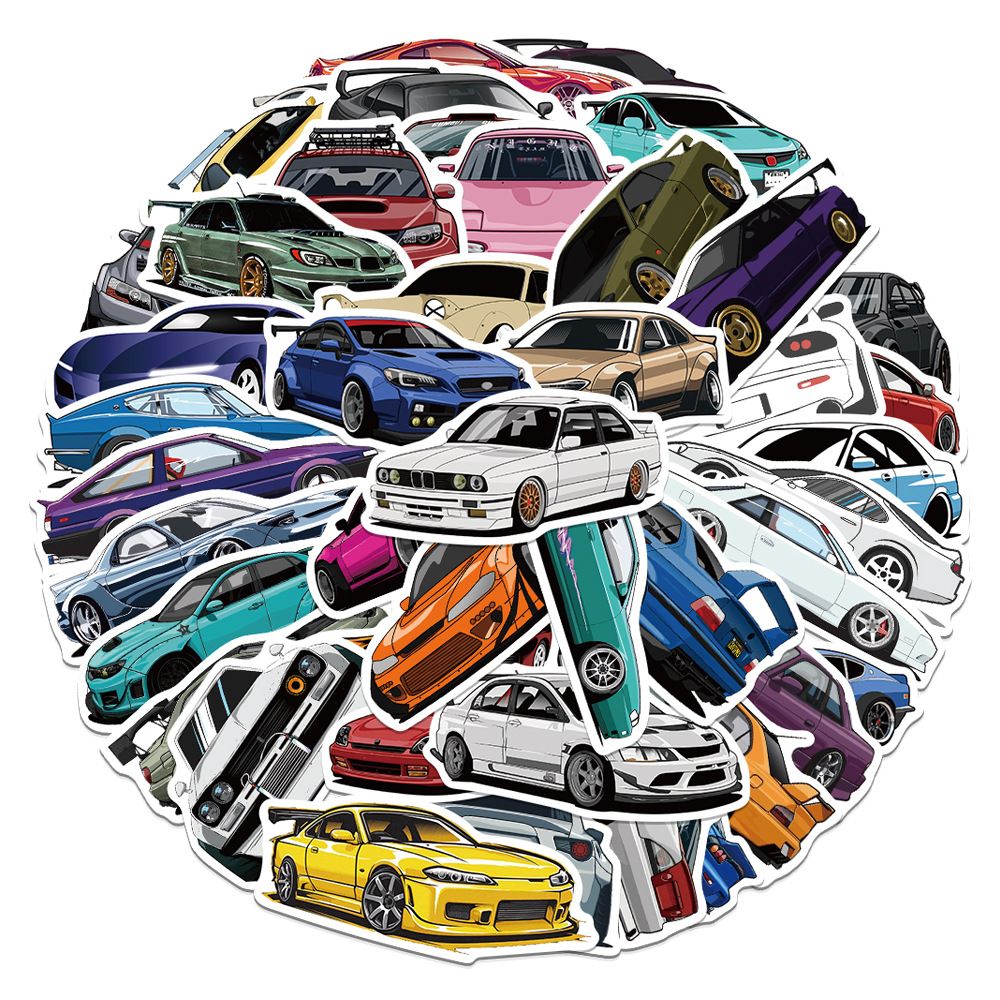 50pcs not repeated doodle sports car cartoon waterproof sticker