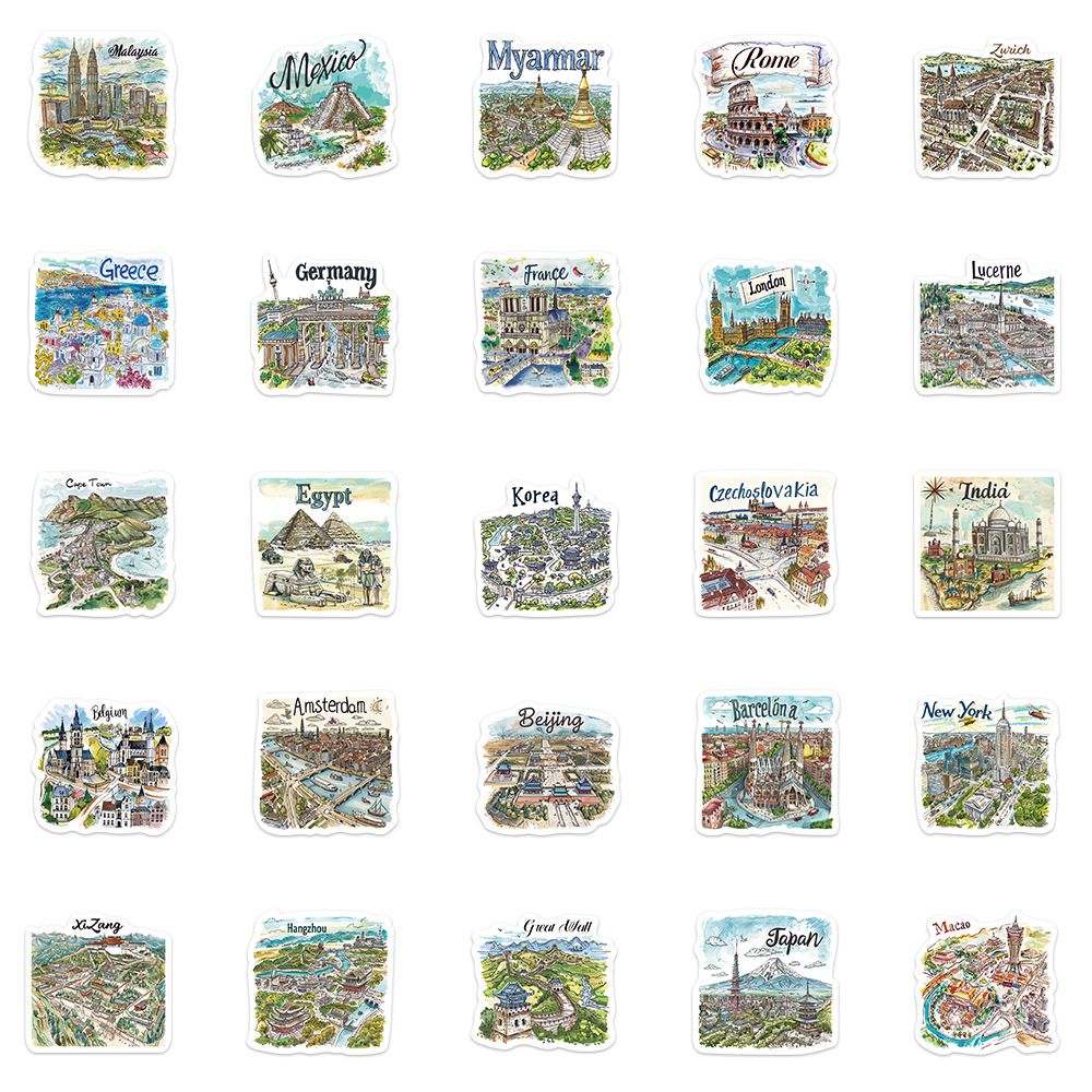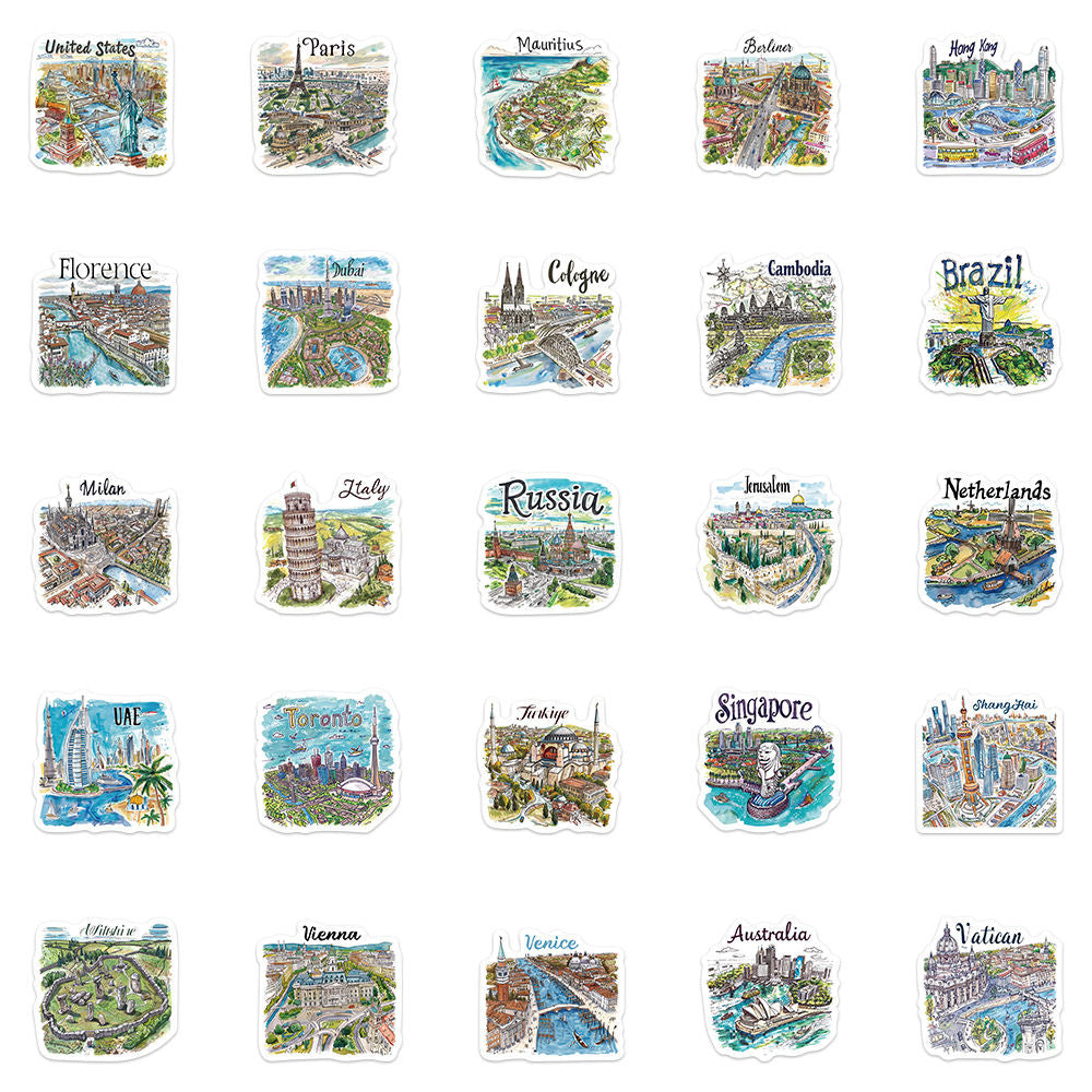 50pcs not repeated famous travelling spot waterproof sticker