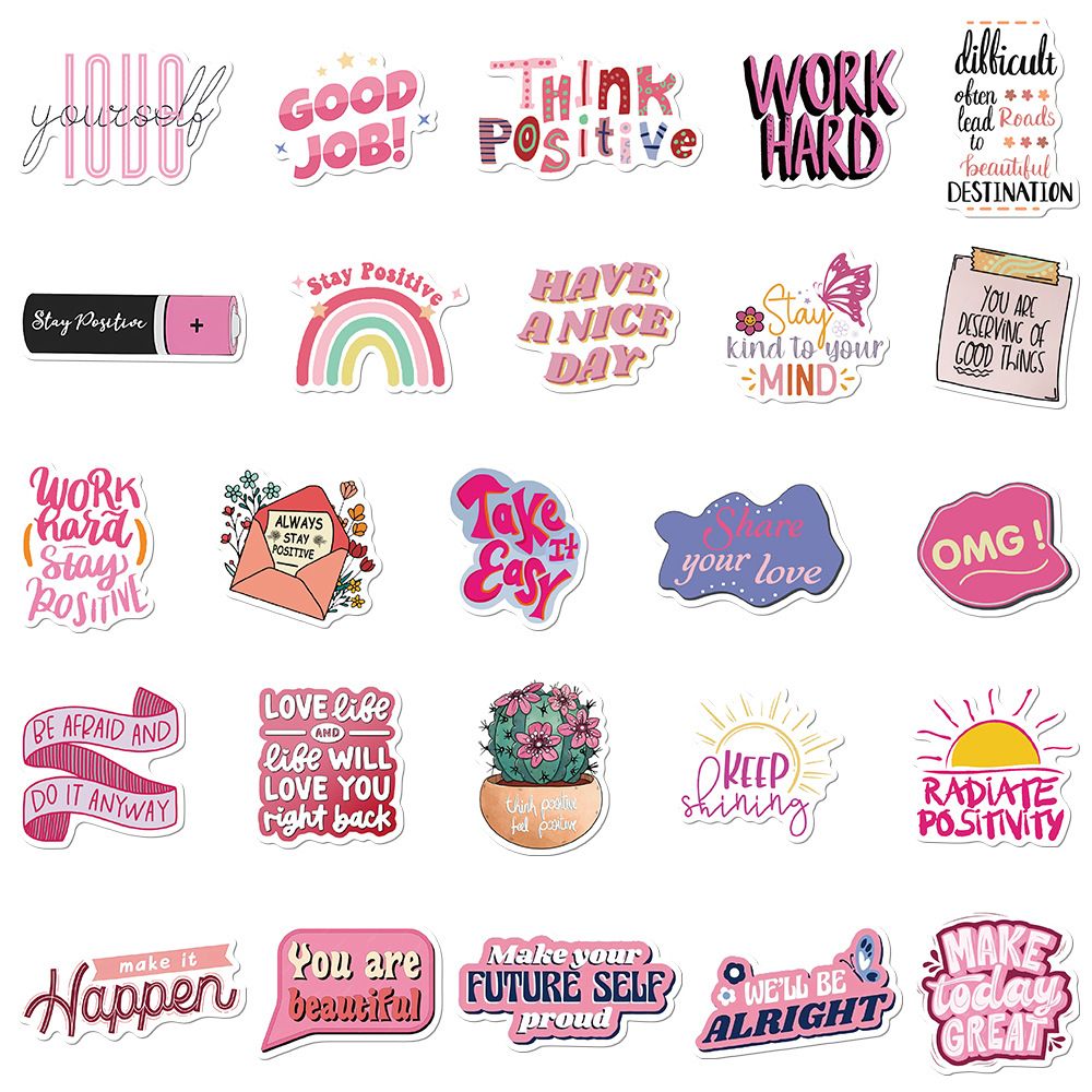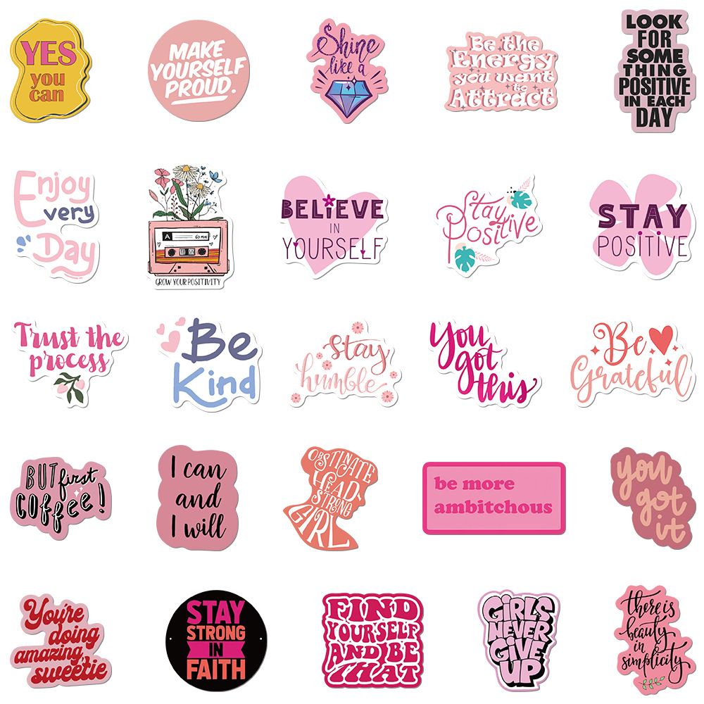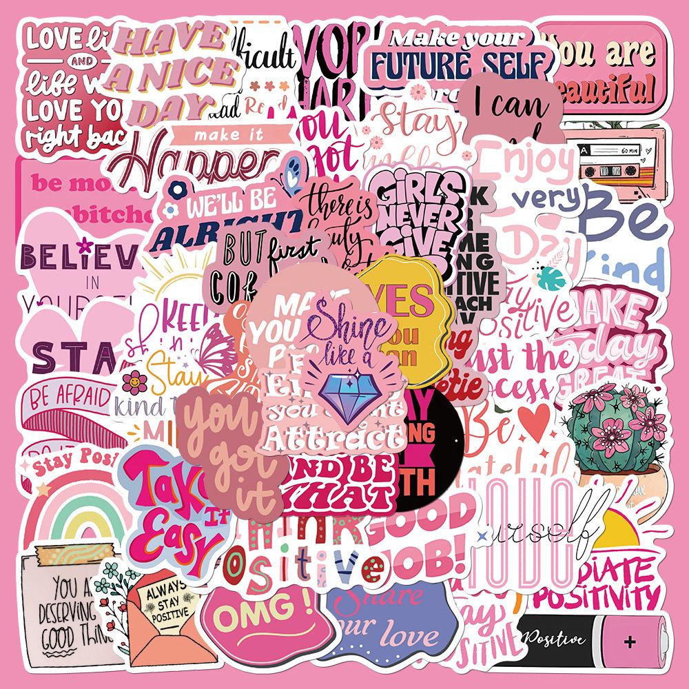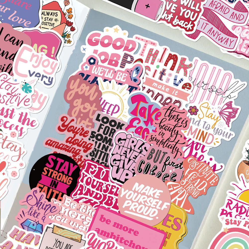 50pcs not repeated pink encourage powerful phrase waterproof sticker
