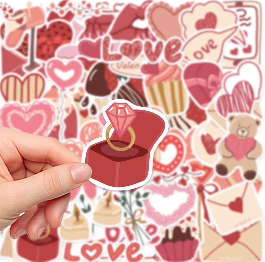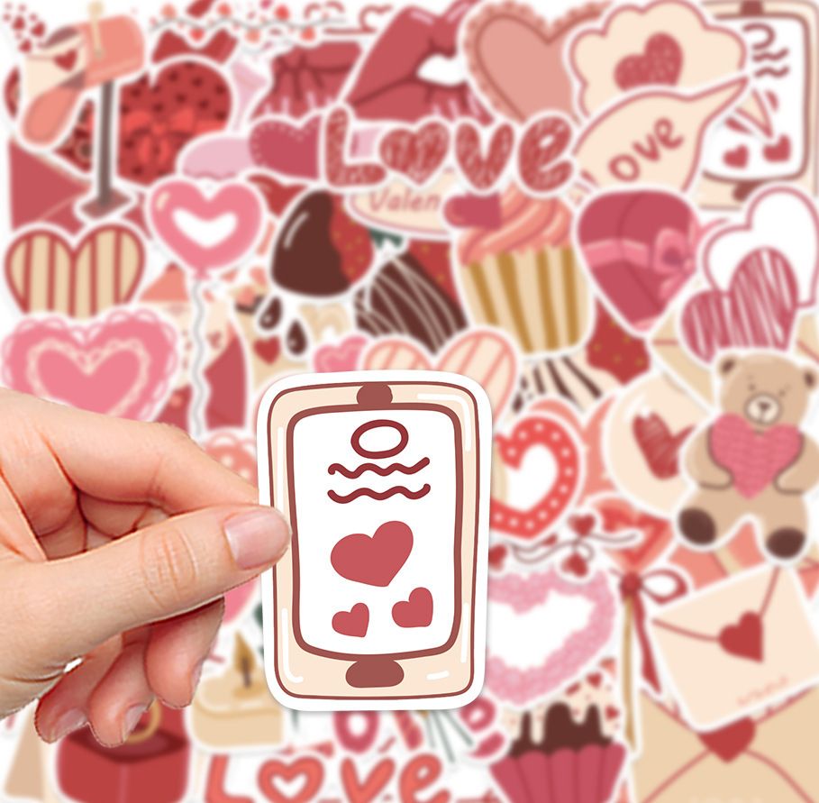 58pcs not repeated romantic love pink sweet girl waterproof sticker