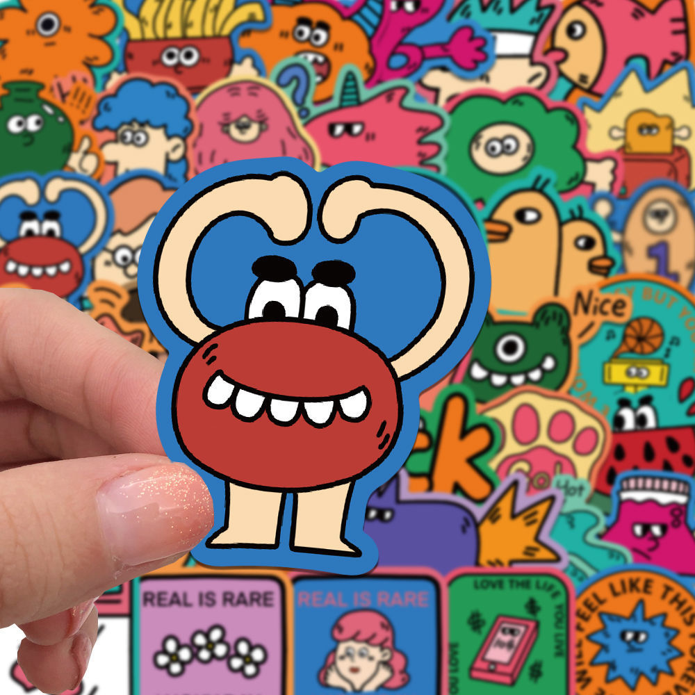 50pcs Not Repeated Wacky Novelties Cartoon Colorful Waterproof Stickers