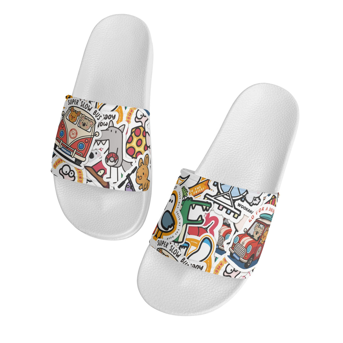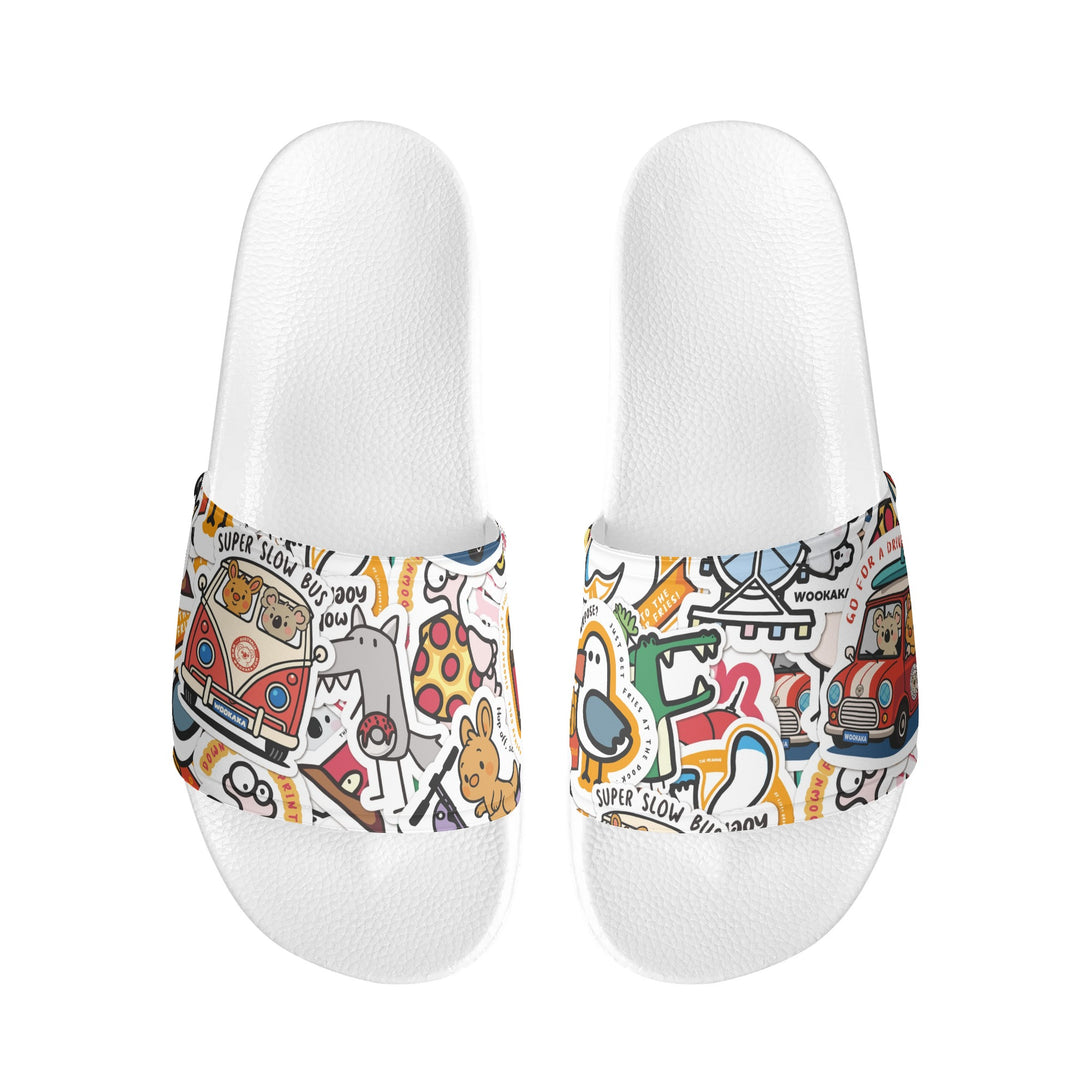 Kid's PVC Black and White House Slides Sandals Bathroom Slippers