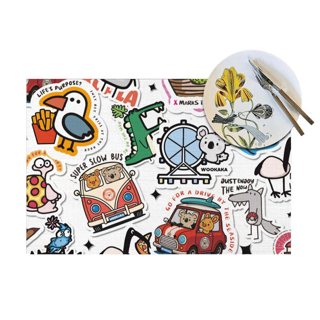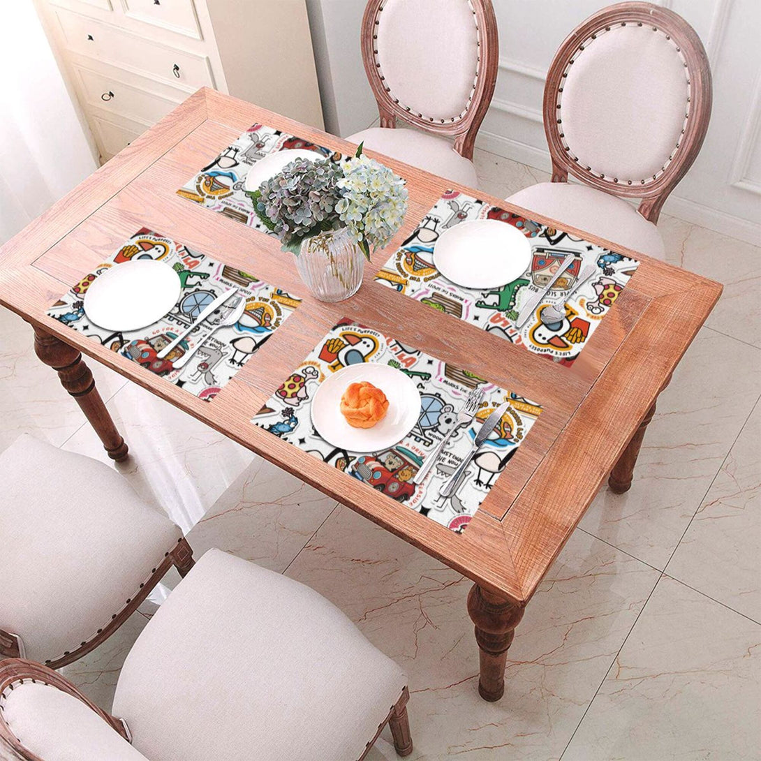 Durability: Fade-resistant printing retains color vibrancy after repeated use; non-slip backing secures placement on tables